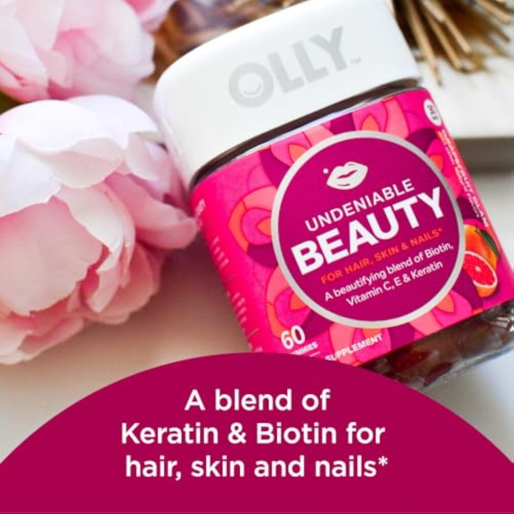- OLLY UNDENIABLE BEAUTY: Delicious OLLY beauty gummies are packed with the perfect blend of active ingredients to help keep your hair and nails in tip-top shape and your skin shining bright*