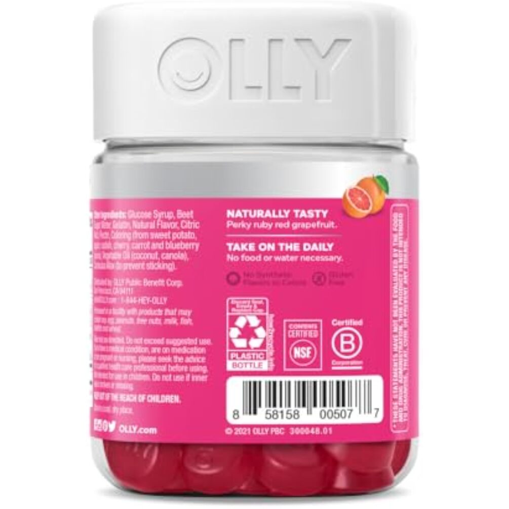 OLLY Undeniable Beauty Gummy, For Hair, Skin, Nails, Biotin, Vitamin C, Keratin, Chewable Supplement, Grapefruit, 30 Day Supply - 60 Count